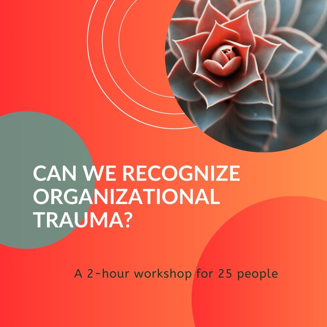 Once a month we hold a forum to ask that direct question, and to answer it by sharing the important framework of organizational trauma that has evolved over forty years. We uplift the researchers that have dived deeply into these questions and shared what they’ve learned, and are still learning. We create among participants language that matches unique and universal examples.